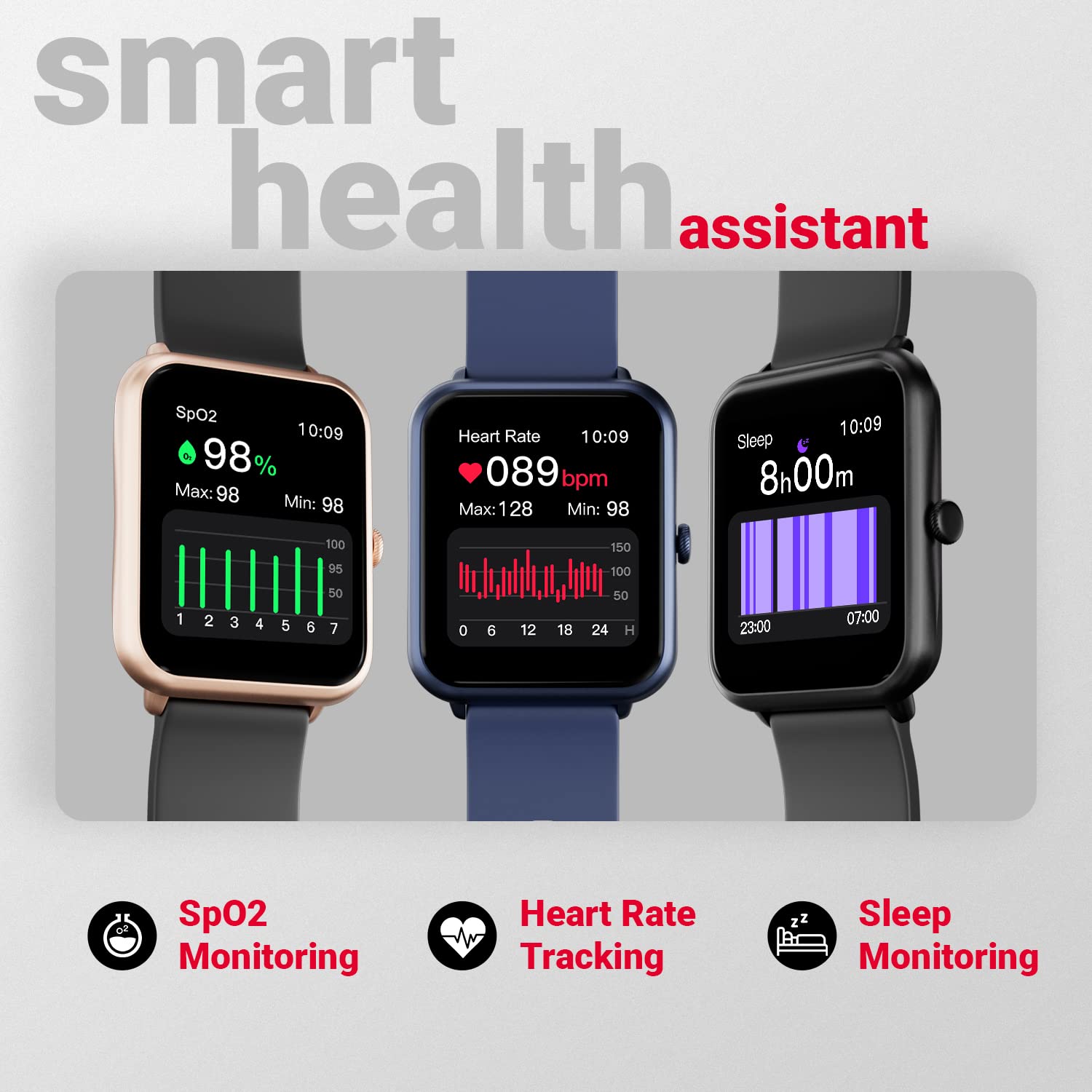 • Supported Applications - Notifcations from all social media channels (Instagram, Whatsapp, Facebook), Call Notifications, Health Tracking (SpO2, Heart Rate, Sleep), Sports Tracking & many more